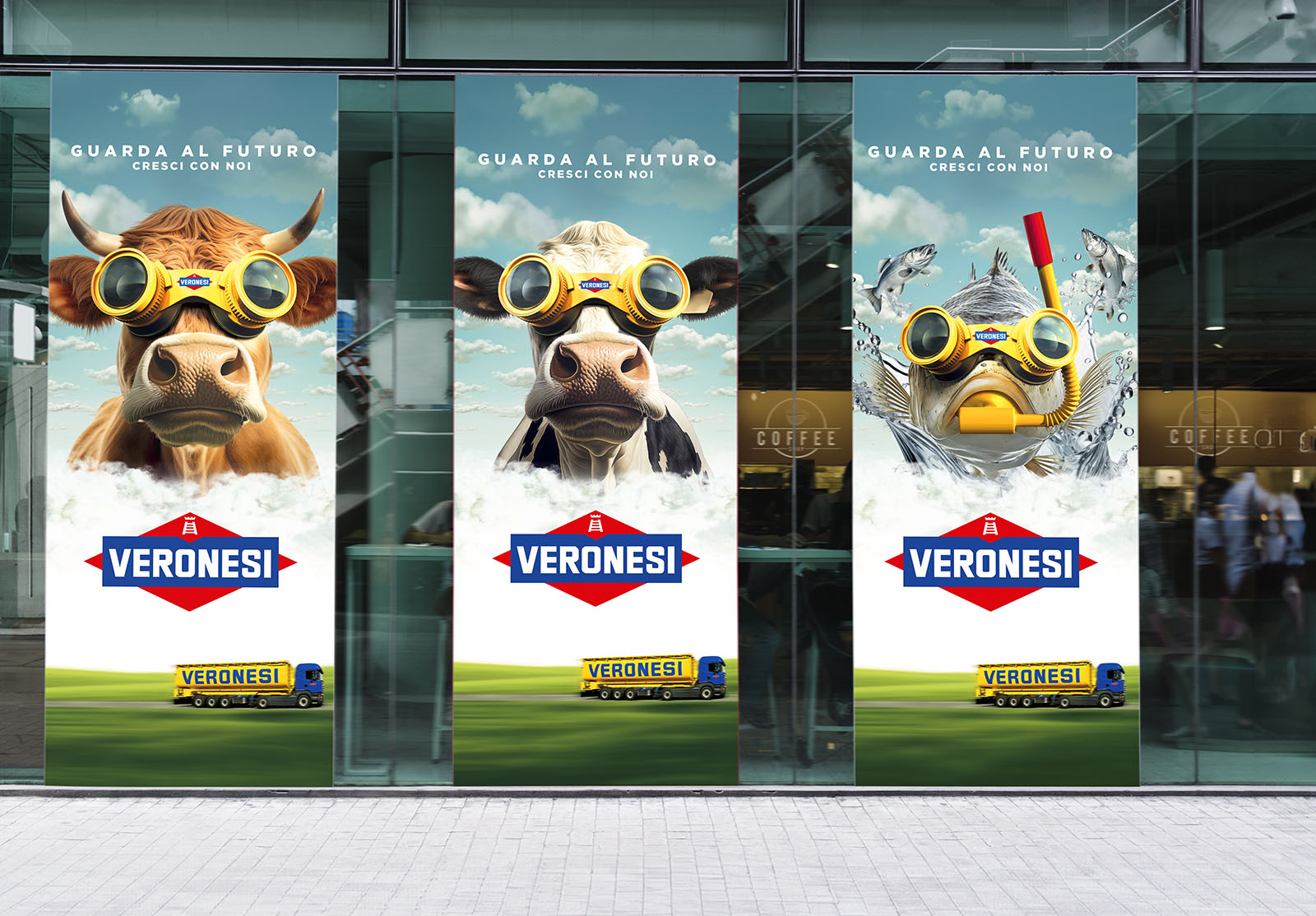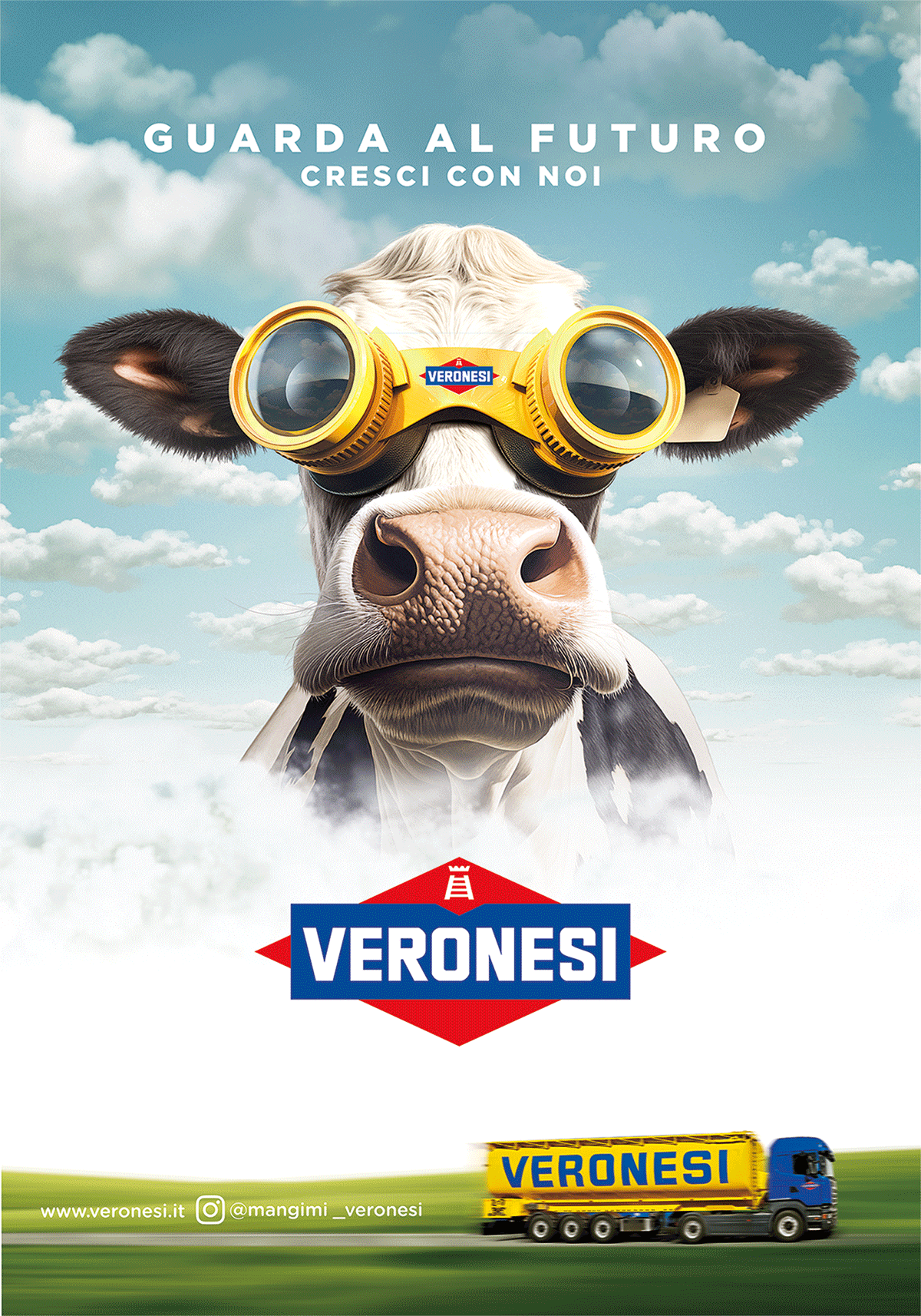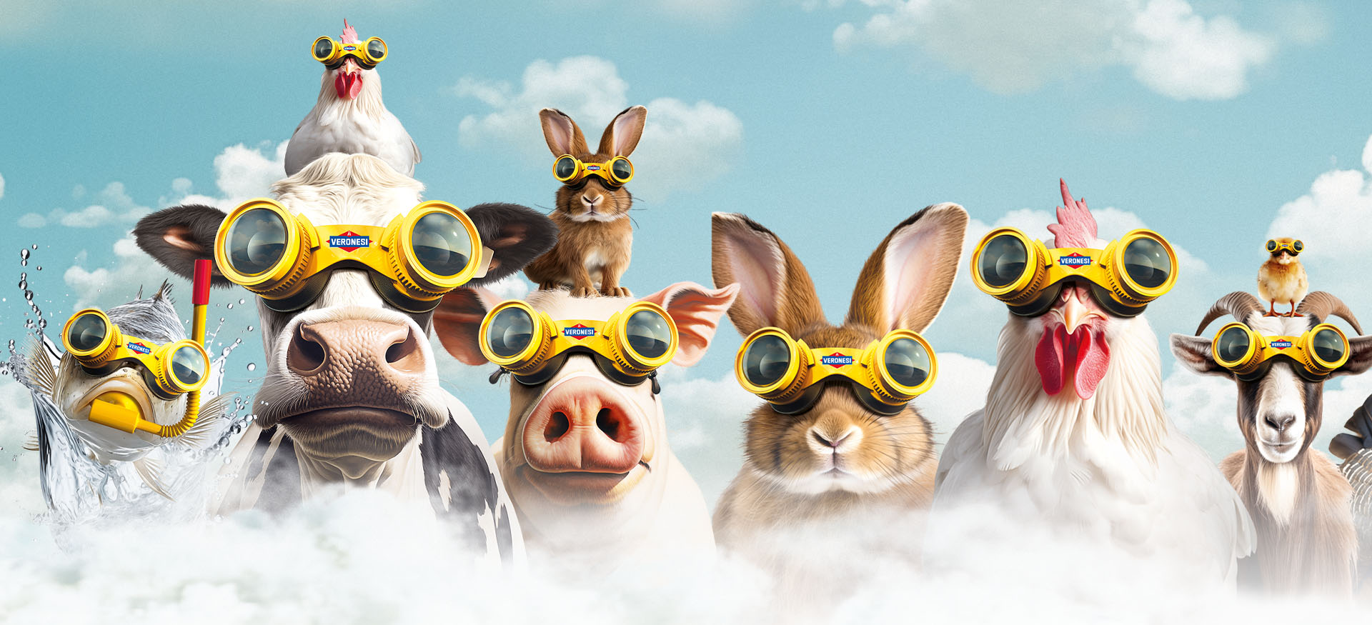In uno scenario onirico che prende spunto dai poster cinematografici, animali sovradimensionati si stagliano in tutta la loro magnificenza su un cielo azzurro, indossando visori di realtà aumentata volti a consolidare Veronesi come partner per una visione sul futuro e sulla crescita.