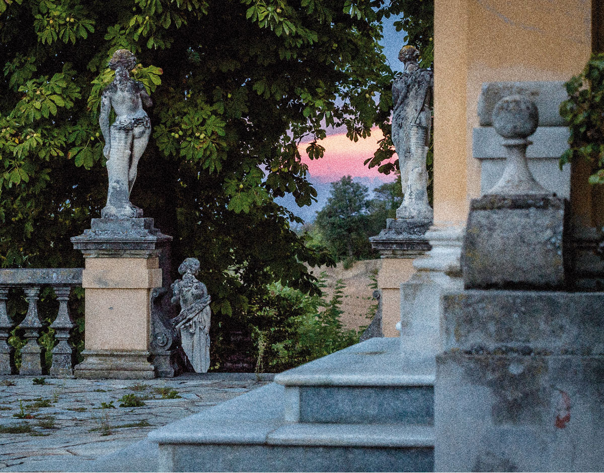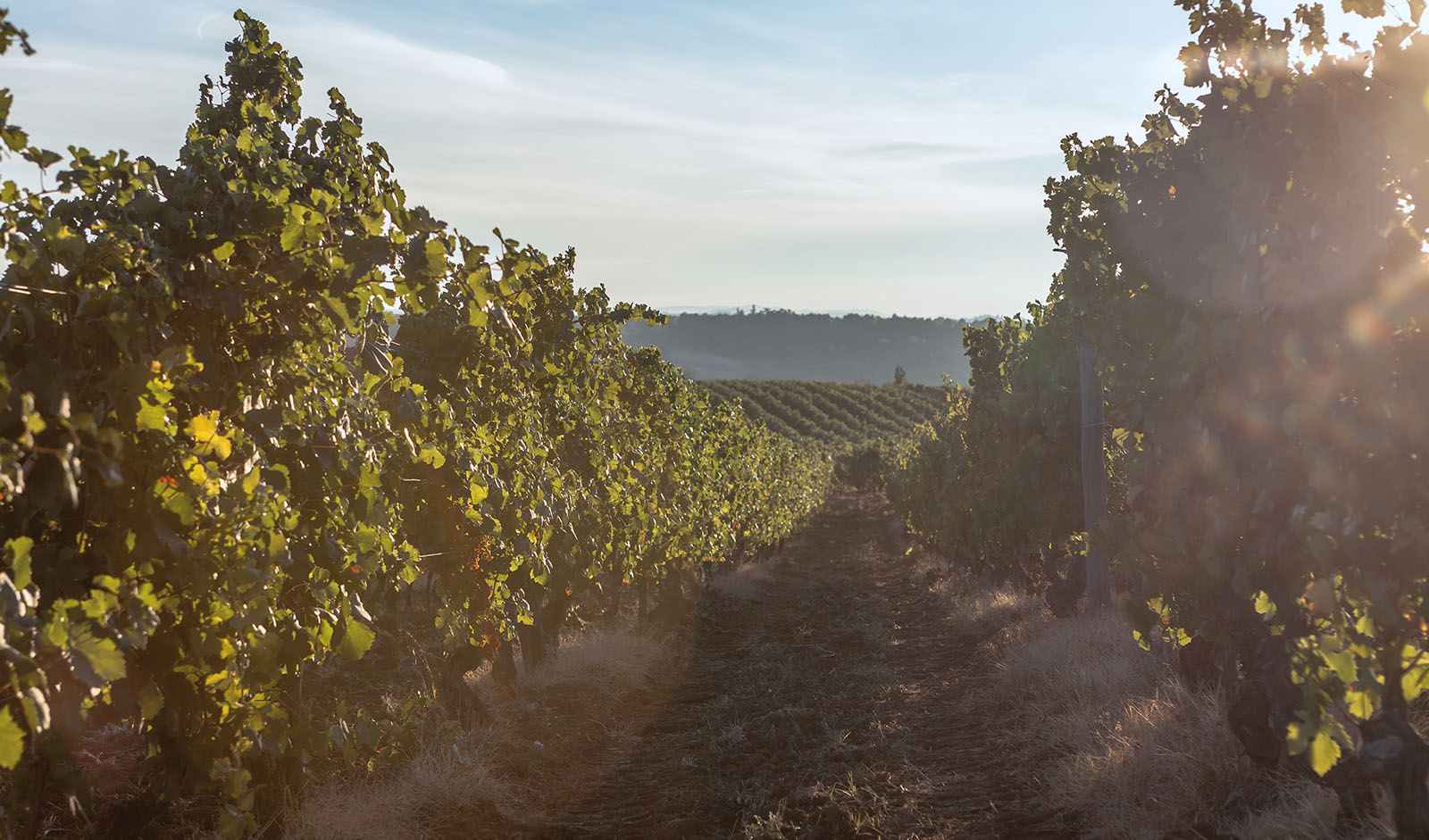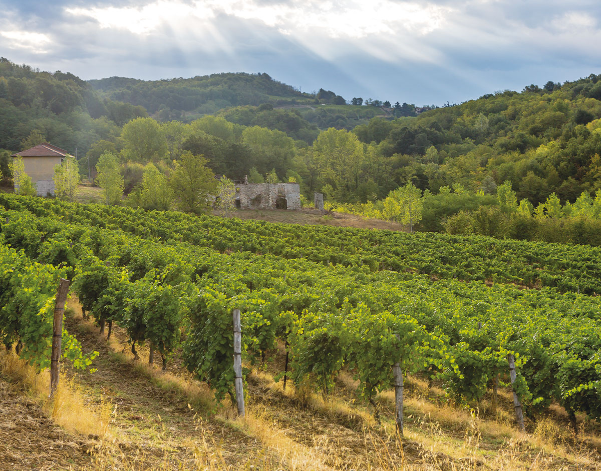 Il piccolo vigneto è sovrastato da una tenuta storica che dall’altro sembra sorvegliare la qualità della terra e della sua produzione.