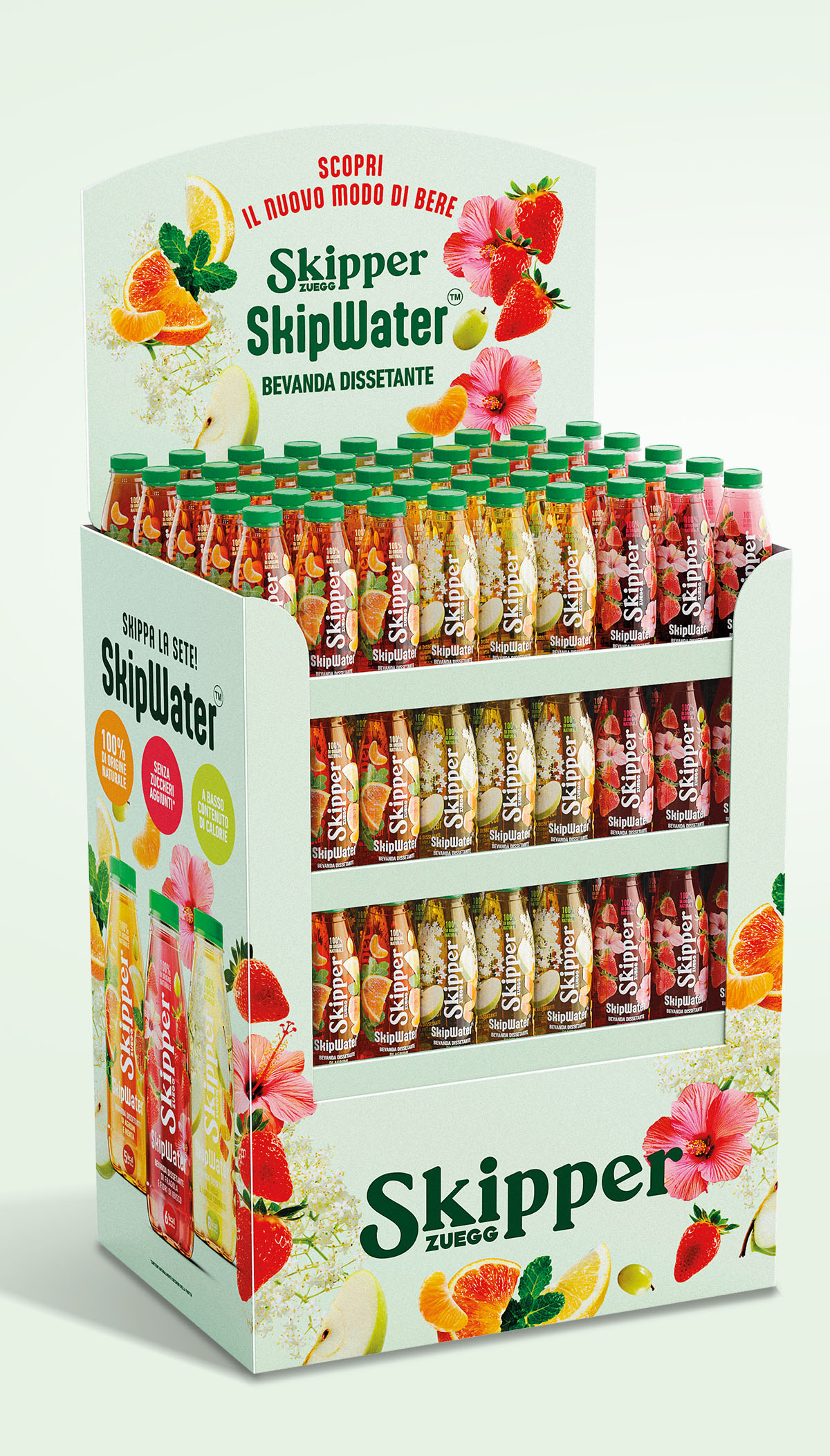 Tre mix di frutta e botaniche, raccontati attraverso l’appetizing e il colore intenso dei frutti, uniti in un visual che sembra quasi sospeso, come in una vera infusione, quasi in un tromp l’oeil che strizza l’occhio dallo scaffale. In questa ritrovata libertà, il logo Skipper si svincola dal suo contenitore, e regala al packaging un impatto più contemporaneo, e innovativo