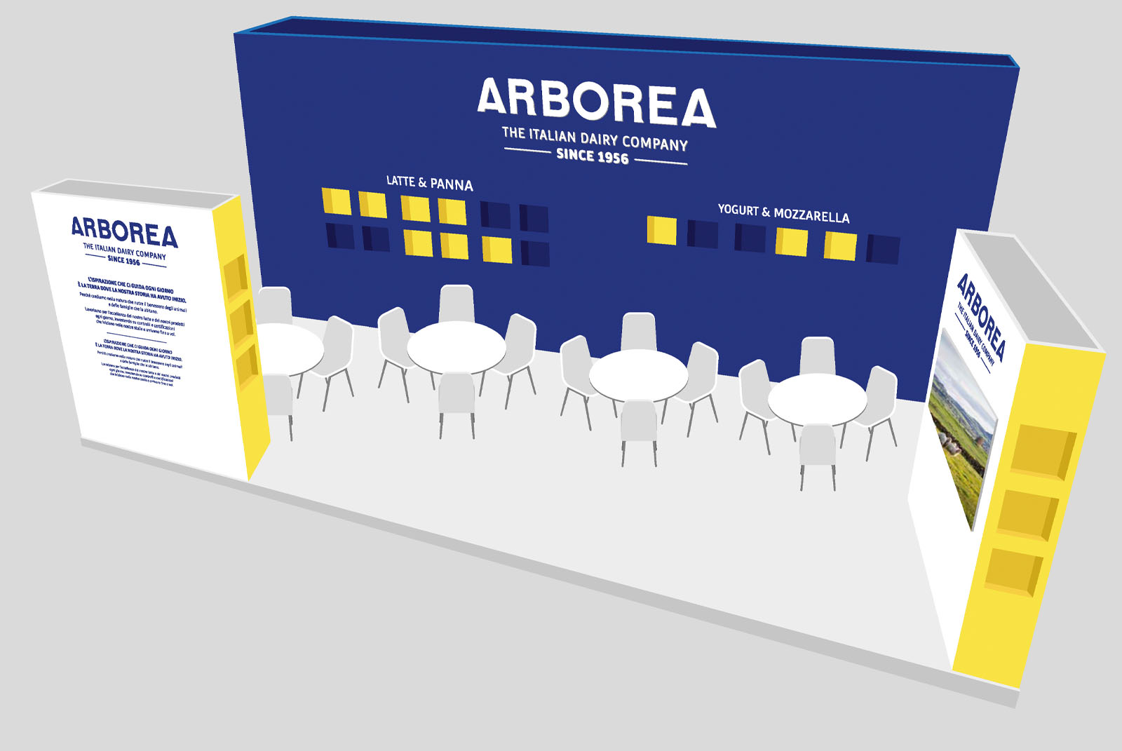 Il lavoro di Corporate si è poi declinato nella progettazione di uno stand in cui il racconto dei valori e dell’azienda ha trovato un importante supporto comunicativo.