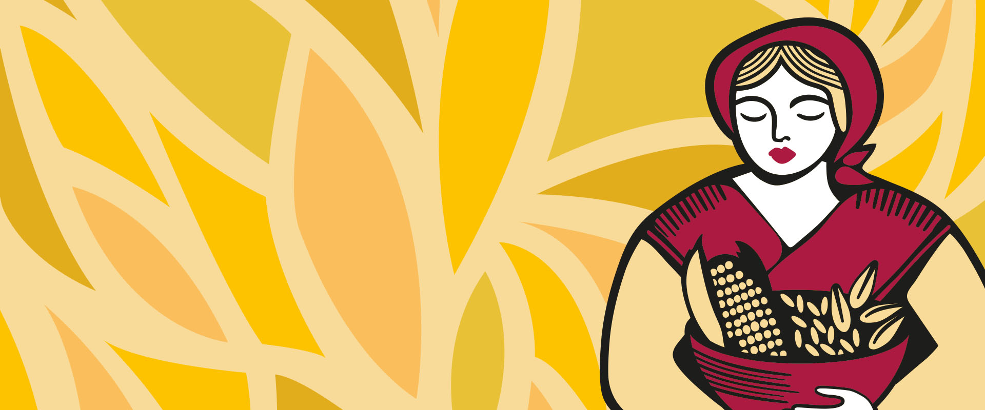 È stata ingentilita, diventando materna e sognante. Accoglie tra le braccia una ciotola che contiene i tre cereali più significativi